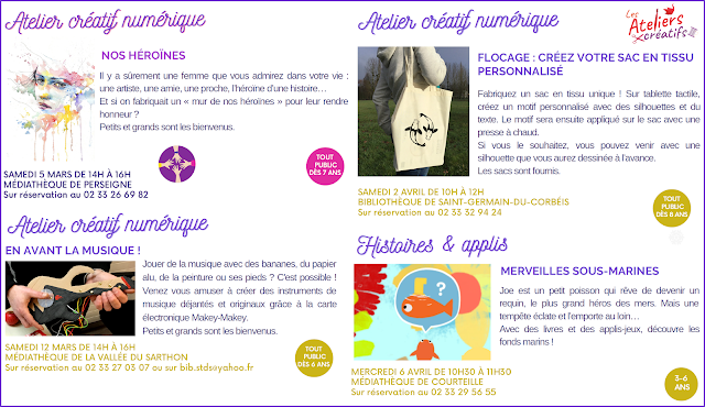 Consultez la liste des ateliers dans les différentes bibliothèques et contactez la médiatrice numérique, Zoé L., au 02 33 80 87 73.